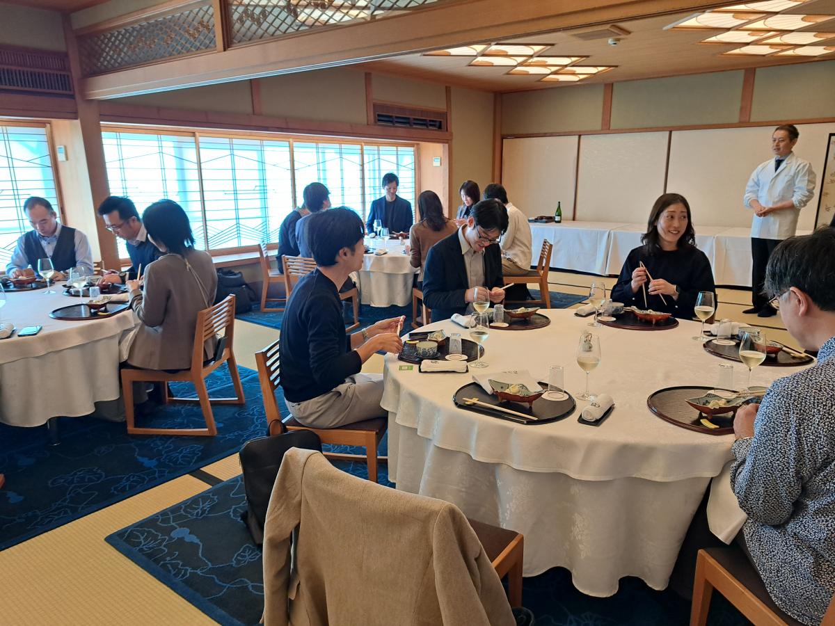 そして今、高橋さんは文学の領域にも活動範囲を拡げ、心にしみる美味しさを提供しようと、京料理における美の頂上を目指してマネージャー兼プレイヤーの日々を送っておられます。プリンシプルが次代をつくる、と20年という長いタームで京料理の後継者を育成する高橋さん、個々の努力は勿論チームから創発が生まれると結びました。この後は、会場を木乃婦に移して京料理を楽しみ、文化的価値を学んだ研修となりました。