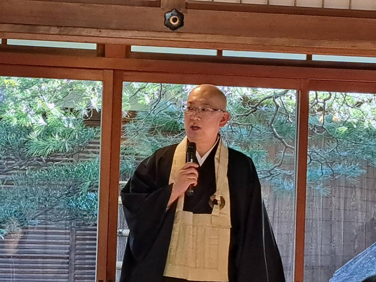 ニュートンの万有引力、アインシュタインの量子物理、ダーウィンの進化論など近代に入って生まれた科学には、神なき世界で人間という存在だけを拠り所として納得できる世界観をつくらなければならなくなっていた。これに対して仏教も同じく神なき世界で人間という存在だけを拠り所として、精神的世界観を確立するために生まれてきた宗教、と語りながら、自己中心の世界が苦しみの原因で、真の現実世界は受け入れがたい不思議さを持っている、と塾生に語りかけられました。